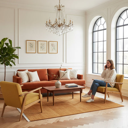 Bring the artistry of The House of Looms into your home through our Augmented Reality feature. See each rug as it truly belongs under your light, within your space, woven seamlessly into your story. A glimpse of craftsmanship before it even arrives.