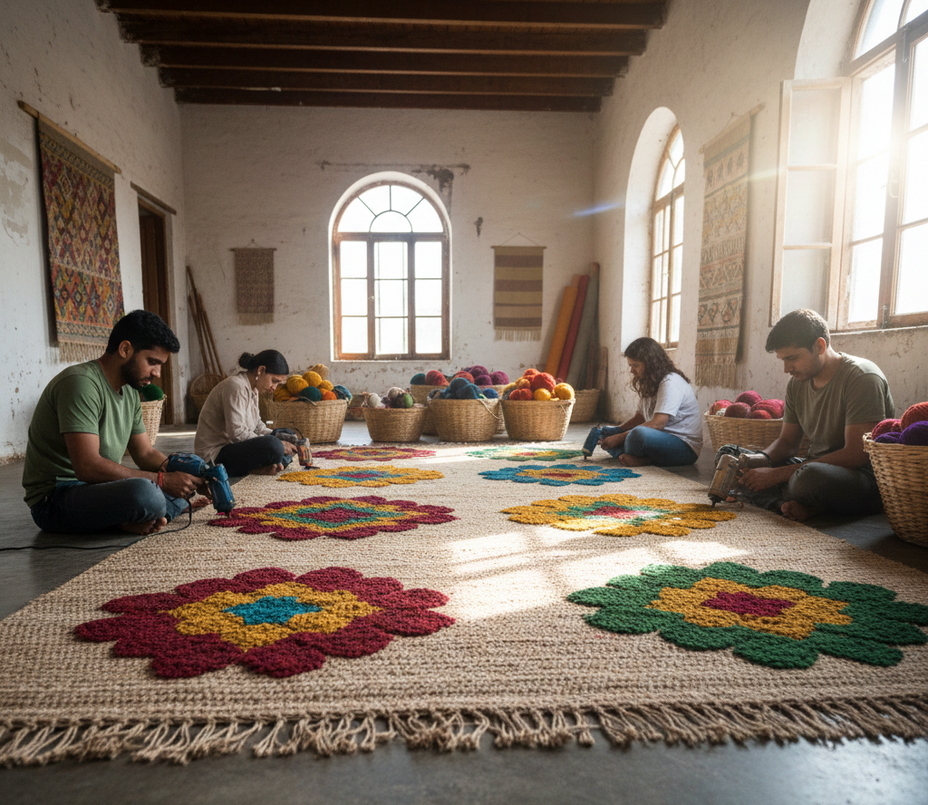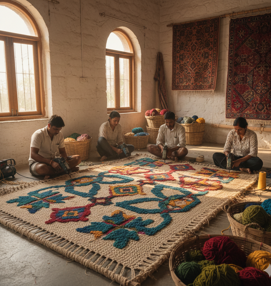 Where heritage meets innovation a handwoven base, hand-tufted to perfection.