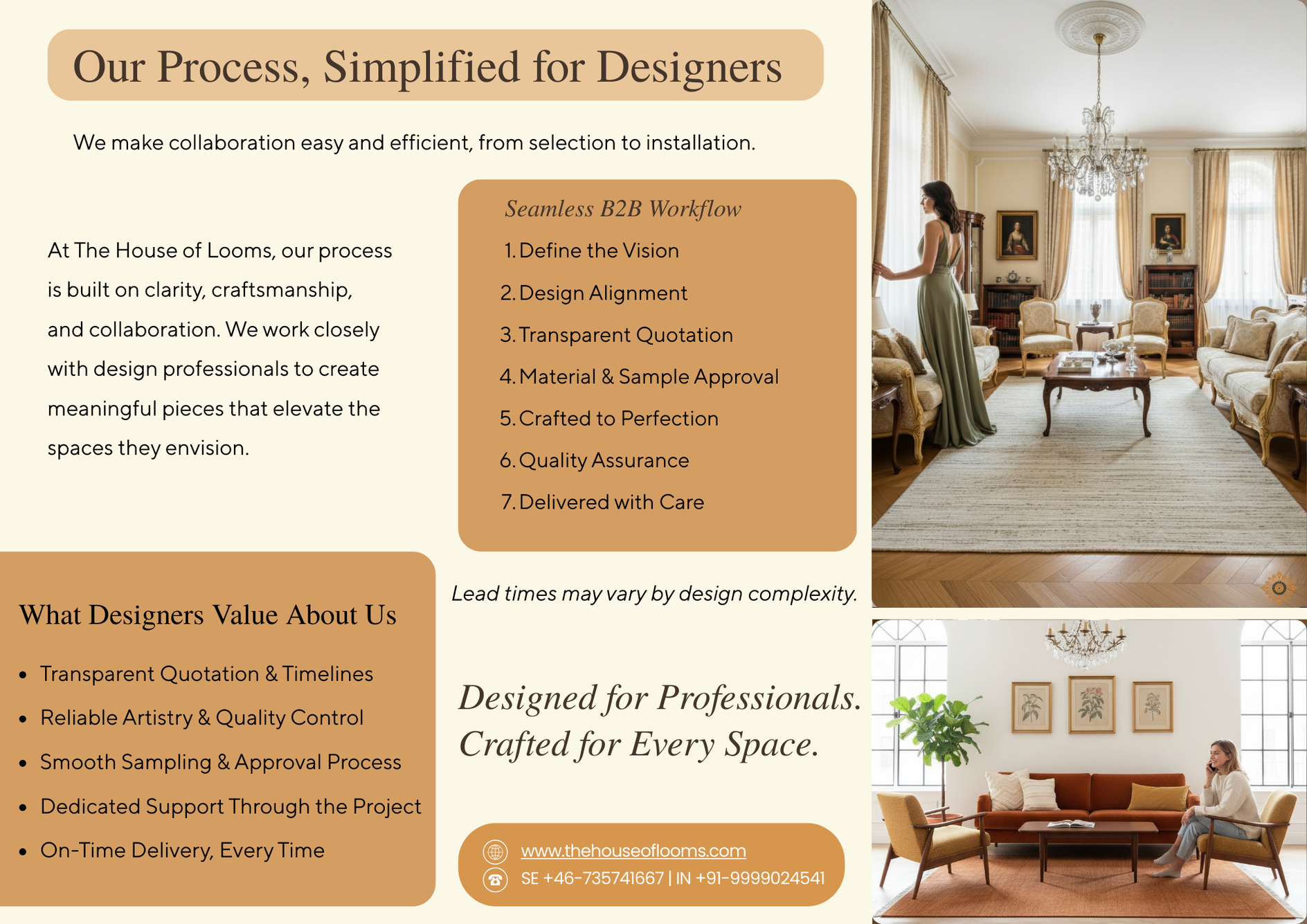 Connect with our design experts from the comfort of your home. Book a personalized consultation to discuss your project needs and explore our collection.